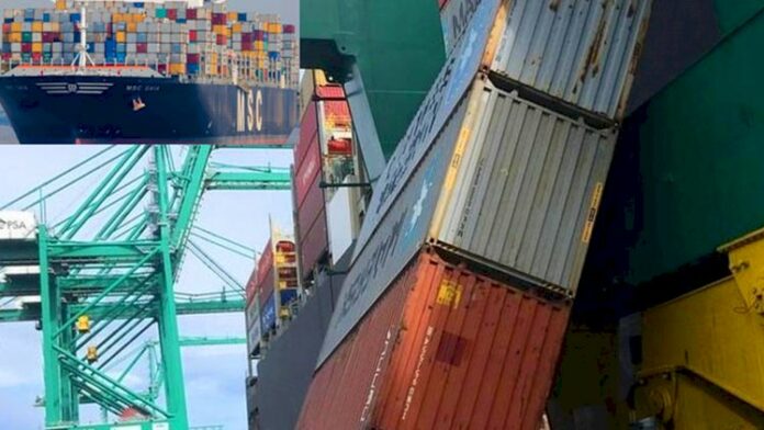 4 stacked containers fell overboard from Neo-Panamax container ship MSC GAIA at Genoa, Italy, during container offloading in the afternoon May 29.