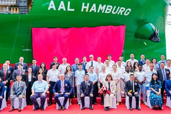On Friday July 12th, 2024, AAL Hamburg was officially named after the historic German port city and strategic hub for AAL’s European operations. The ceremony took place in the presence of representatives from AAL Shipping, Columbia Shipmanagement, Schoeller Holdings and CSSC Huangpu-Wenchong Shipbuilding.