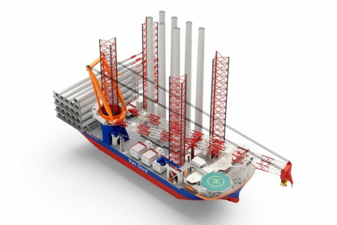 As a major player in the global offshore wind market, Van Oord has contributed to the installation of wind turbines with a combined renewable energy capacity of 14.5 gigawatts since 2002, representing 40 percent of the installed capacity worldwide at the end of 2020. Its forthcoming vessel, Boreas, will be one of the largest and most technologically advanced hybridized JUVs in operation, measuring 175 meters in length. It will be able to lift over 3,000 tons and will feature 126-meter-tall legs allowing it to operate at depths of up to 70 meters jacked up, with a capacity to install up to 20 megawatt (MW) offshore wind turbines.