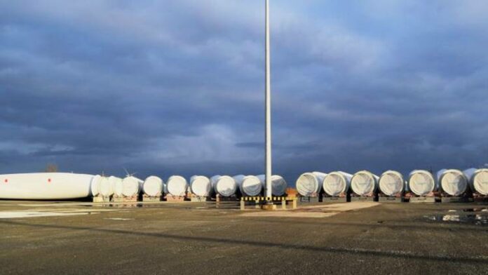 The UK's port group said UK's leading ports group said that to accommodate the expanding business of the leading wind turbine blade manufacturer, a six-acre area located at the Port of Hull's Eastern Access, on King George Dock, is now being leased for the storage of the 75 metre, 30 tonne blades.