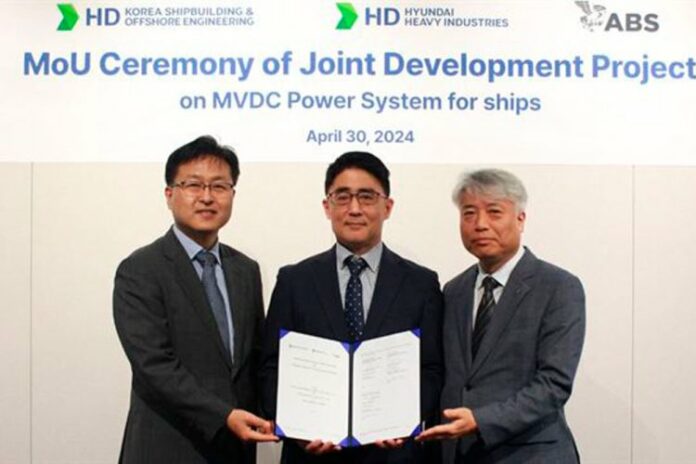 ABS, HD Korea Shipbuilding & Offshore Engineering Co., Ltd. (HD KSOE) and HD Hyundai Heavy Industries, Co., Ltd. (HHI) signed a memorandum of understanding to collaborate on the technical feasibility for medium-voltage direct current (MVDC) power systems on ships.