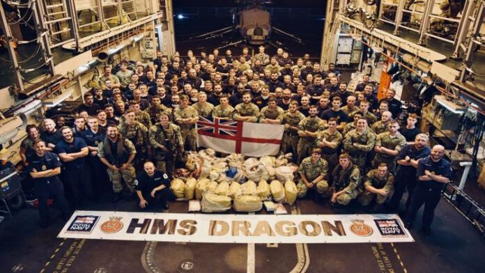 Dragon’s sailors and Royal Marines launched fast boats to halt the two dhows in two separate missions over a demanding two-day period. After barding and searching the boats, the servicemembers removed hundreds of sacks of narcotics worth more than $95 million.