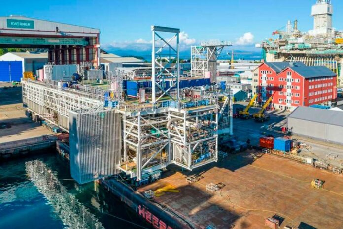 The module is on barge at Stord and will be towed to the Johan Sverdrup field and lifted on board the riser platform by the heavy-lift vessel Sleipnir. This operation is expected to take two days.