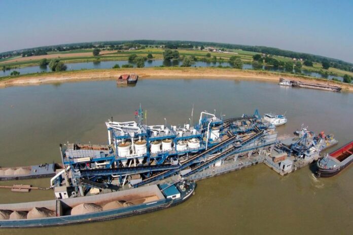 Kaliwaal 41 is a unique floating pontoon equipped with an industrial installation that receives material extracted from the water bed, separates the sand from the gravel, and then uses screens to deliver up to 144 different grades of sand for industrial applications. It is one of just a few floating sand separation installations in the Netherlands and is currently playing an important role in the Dutch Maaspark Well River widening project, which aims to create a safe living environment in the Maas valley between Well and Aijen.