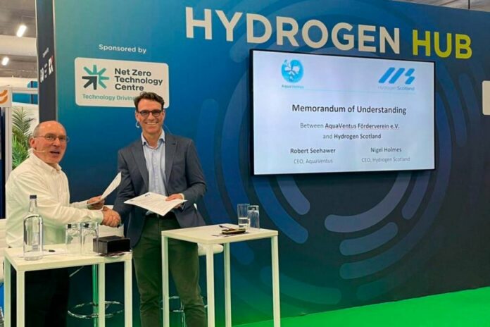 AquaVentus, Germany’s offshore wind-to-hydrogen initiative, and Hydrogen Scotland signed a Memorandum of Understanding (MoU) to deepen cooperation on green hydrogen production, transport, and deployment across the North Sea region.