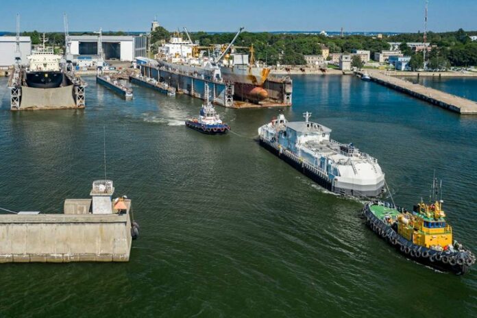 AKVA group has designed the barge with new technology for waterborne feeding, which was first presented at AquaNor in 2019. This is the second feed barge to be delivered with the new type of waterborne feeding technology.