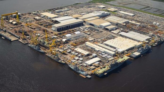 A court in Mississippi issued an arrest warrant for the heavy lift ship 'Hawk' that was involved in an allision and damage of a newbuild US warship at Ingalls Shipbuilding in Pascagoula, in late March.
