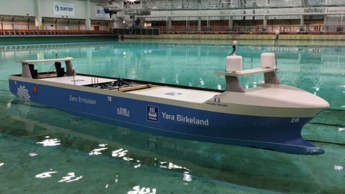 In August, Norwegian shipbuilder Vard was awarded a $30m contract to build the 120-teu Yara Birkeland. Kongsberg is developing the vessel in partnership with Norwegian chemical company Yara, which currently uses 40,000 diesel truck journeys each year to transport its fertiliser products to export terminals.