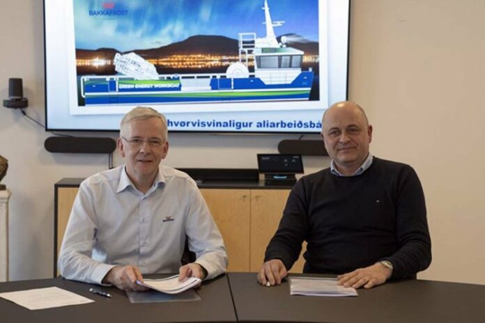 Bakkafrost and MEST Shipyard have signed a contract on the construction of a fully electric workboat. The contract was signed at Bakkafrost’ s headquarters at Glyvrar.