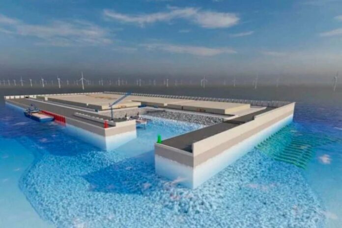 To create the artificial energy islands, engineers will use an estimated 2.3 million cubic meters of sand, and the caissons being built will form the outer walls of the island.