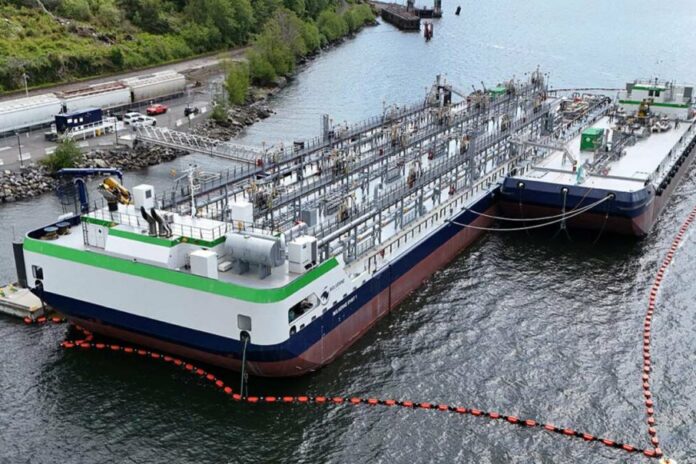 Both barges are fully compliant with Transport Canada regulations and are classed for their service with Lloyds Register. Attention has been paid to keep all potential sources of emissions low, with IMO Tier III compliant exhausts equipped with after-treatment, silencing for all diesel-fired machinery, vapour recovery for the cargo systems, and low-intensity lighting.