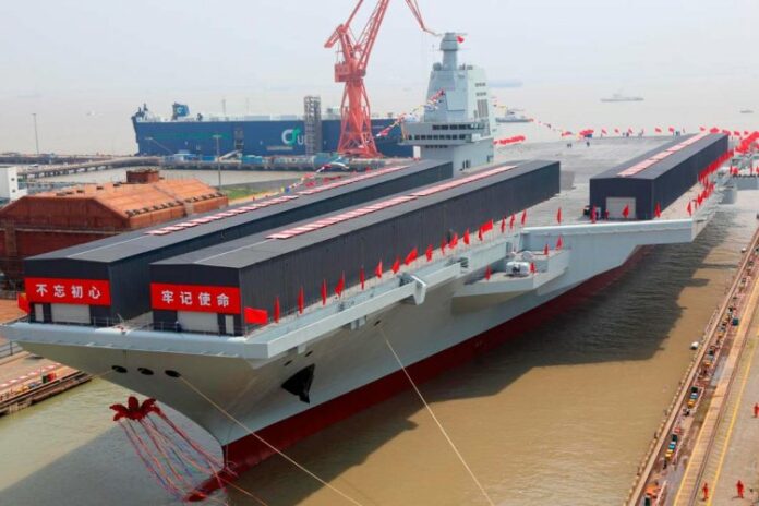 The Fujian, which features a full-length, flat flight deck with an advanced catapult-launch system for jets, takes its name from the Chinese province opposite democratically governed Taiwan.