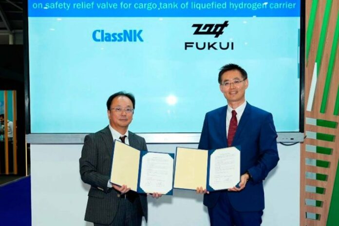 Fukui Seisakusho Co., Ltd. (FUKUI) and ClassNK have signed a Memorandum of Understanding concerning a joint study on a safety relief valve for a cargo tank of liquefied hydrogen carriers at the “Gastech2023” held in Singapore.