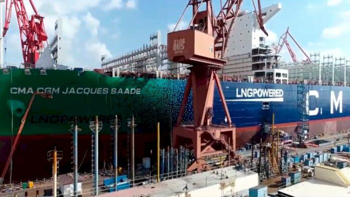 This major milestone in the construction of the world's first LNG-powered ultra large containership was reached today at the Shanghai Jiangnan-Changxing Shipyard, at an event attended by Rodolphe Saadé, Chairman and Chief Executive Officer of the CMA CGM Group, French and Chinese officials, business leaders and CMA CGM Group customers.