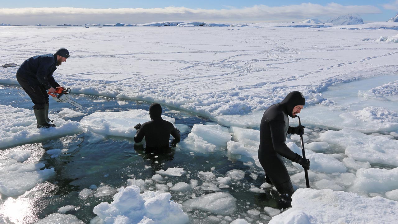 Photo: Creating a channel near the station. Through this channel, researchers on a boat can get to the open water.