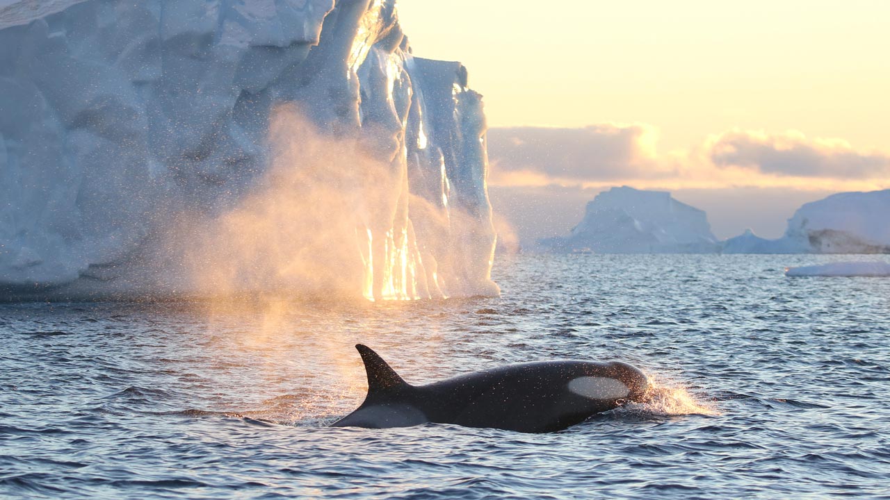 Photo: Meeting with orcas near the station almost in the middle of Antarctic winter.
