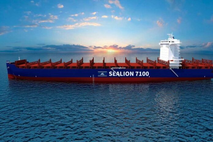 The Singaporean shipping arm of AL Group Asiatic Lloyd has ordered the six 7,100 TEU feeders at Dalian Shipbuilding Industry Co, the yard will deliver six vessels during 2023 to 2025. Length between perpendiculars of the four identical vessels is 255 meter, with 42.8 meter breadth, 14.5 meter design load draught and a design speed of 21.4 knots. Damen will provide the tailor designed rudder for each one of the vessels, measuring 61 square meter and generating 3300 Kilonewton meter of torque.