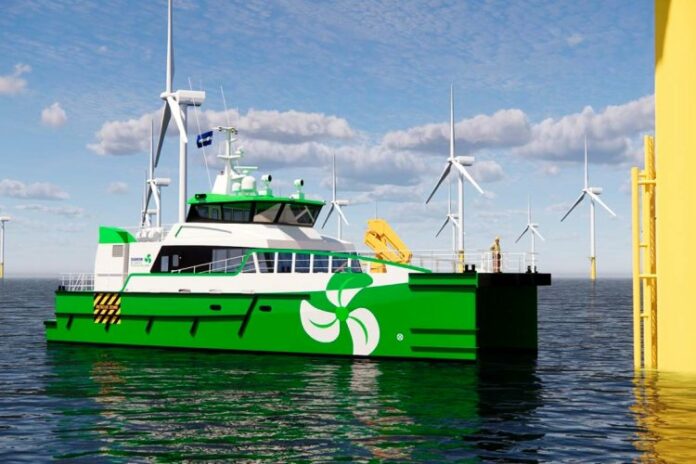 Hybrid propulsion enables zero emission operation in wind parks and in harbours. Fast and stable crew transfer vessels that are able to operate at rough seas have become a necessity in offshore energy production. In the quickly developing offshore wind industry, vessels for crew and supplies need to be versatile, stable and sturdy, to be able to manoeuvre in between the turbine shafts and to offer safe and fast transfers from and to shore stations.