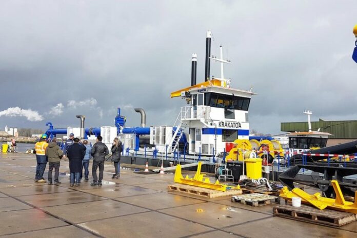 At the Damen Dredging yard in Nijkerk, the Netherlands, the Cutter Suction Dredger (CSD) 650 Krakatoa has been inspected by her owner before shipment.