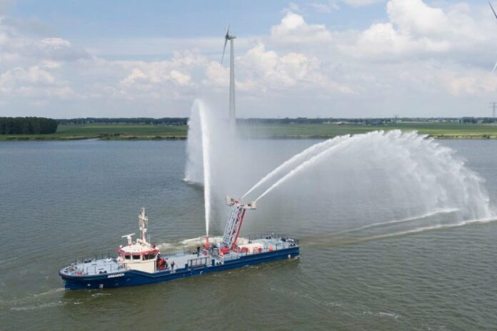 The Archimedes was engineered and built by Damen Shipyards Hardinxveld, as were the twin Fire-Fighting vessels delivered to Flotte Hamburg, the subsidiary of the Hamburg Port Authority (HPA) tasked with implementing low-emission shipping. 35-metres in length, their custom designs optimise them for operations in the city as well as the port of Hamburg and they carry an impressive array of fire suppression systems. The Prag is being operated by Hamburg’s fire service while the Dresden supports the HPA, the fire service and other third parties. Both are state-of-the-art, plug-in hybrid vessels with 315kWh of battery capacity, and when not fighting fires they will be undertaking other activities including water supply, rescue and recovery, technical assistance and environmental protection.