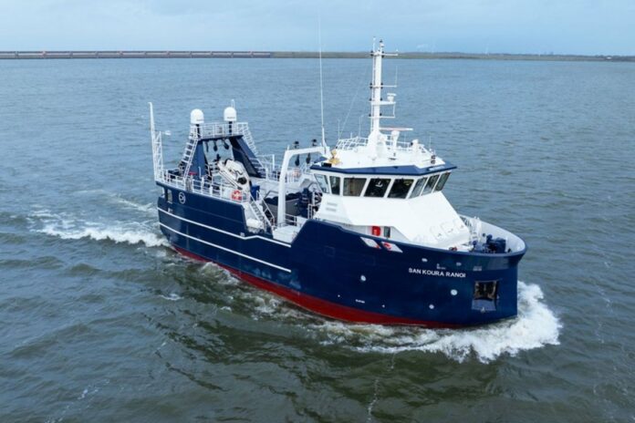 The hull of the vessel was launched earlier in Gdańsk, Poland, and transported to Damen Maaskant’s yard in Stellendam, the Netherlands for outfitting and final completion. With its arrival in New Zealand, the San Koura Rangi is ready to join Sanford’s fleet.