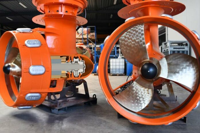 AAAPropulsion, based in Boven-Leeuwen, the Netherlands, is specialised in the production of electric maritime propulsion systems. The patented A-Pod is a 360°azimuthing thruster system  with an integrated electric motor installed in the lower POD housing and cooled by the outer water.