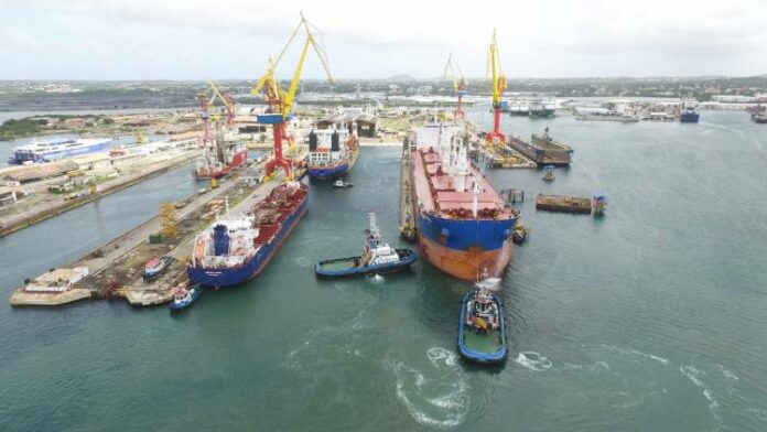 Damen Shiprepair Curaçao (DSCu), has on 2 November commissioned its large floating C dock. After the final tests had been carried out in the morning, the C Dock was submerged onto the equalized seabed. DSCu Nautical department, with the help of local KTK pilots and tugs subsequently docked the first commercial ship, a 63,400 tonnes deadweight bulkcarrier, thus putting the C dock into service.