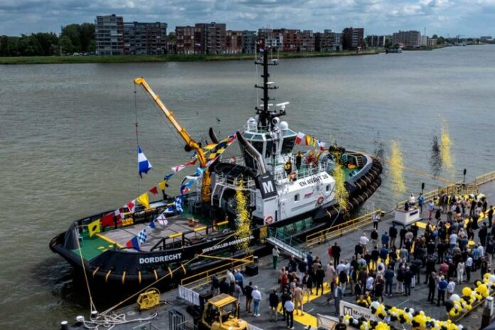 On the 28th of June, a christening ceremony took place in Dordrecht, the Netherlands, marking the delivery of a new Damen ASD Tug 3212 by Damen Shipyards to leading Dutch towage company Muller Dordrecht.
