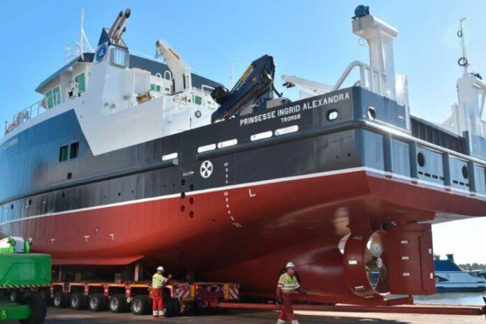 A single high-lift Barke® flap rudder together with a piston-type steering gear system was delivered by Damen Marine Components’ (DMC) to Holland Shipyards Group’s yard in Hardinxveld-Giessendam. There they were fitted into a 35-metre coastal research vessel that was built for the Norwegian Institute of Marine Research (IMR) and which is named the RV Prinsesse Ingrid Alexandra.