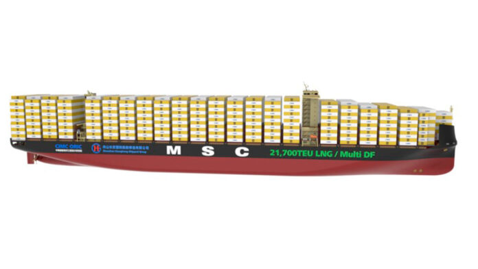 DNV has awarded an Approval in Principle (AiP) to Zhoushan Changhong International and CIMC ORIC for a new 21,700 TEU multi-fuel ready ultra-large container ship design developed in partnership with MSC.
