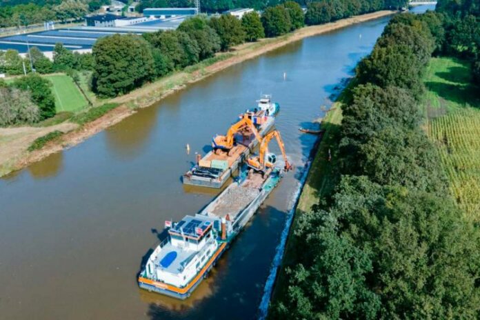 During project execution, the Twente canal remained accessible and in use at all times. At the same time, up to 80 pieces of floating equipment worked on the canal. The project paid a lot of attention to sustainability. Part of the sheet pile walls and the dredged material were reused on projects in the area.