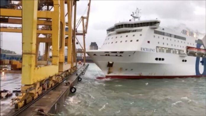 Ro-Pax Ferry EXCELLENT connecting port of Genoa, Barcelona and Tangier hit container terminal pier at around 0700 UTC Oct 31, while maneuvering in Barcelona port to dock, on arrival. Bad weather and stormy wind presumably, caused the accident. Maneuvering was strange, indeed.