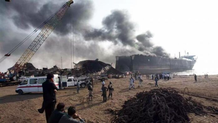On Sunday, another oil tanker caught fire on the beach at Gadani, Pakistan, injuring seven. Two workers are said to be in critical condition.