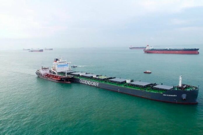Oldendorff Carriers, together with global resources company BHP, advanced biofuels pioneer GoodFuels (GF) and with the support of the Maritime and Port Authority of Singapore (MPA), has successfully conducted the first marine biofuel trial involving an ocean-going vessel bunkered in Singapore.
