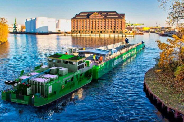 Therefore, next to the Westhafen in Berlin, only one additional land-based station is needed to supply the ELEKTRA with hydrogen and electricity to sail on the waterways of Berlin in the direction of the Rhine/Ruhr, Hamburg and Stettin. In total the vessel can operate push-barge combinations up to 150 m in length.