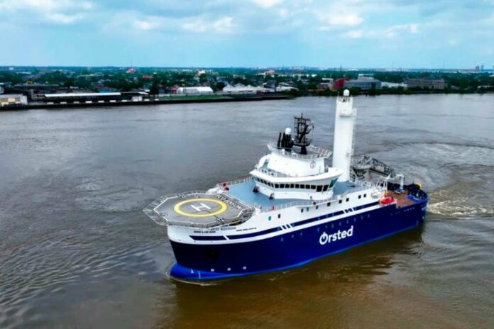 The ECO EDISON, officially christened Saturday at the Port of New Orleans by Jennifer Scalise, is the first U.S.-flagged offshore wind SOV. An example of the major financial investments into U.S. ports, maritime activities, manufacturing, workforce and domestic energy by Ørsted, the vessel will play an integral part of the operation and maintenance of Ørsted and Eversource’s South Fork Wind, Revolution Wind and Sunrise Wind projects.