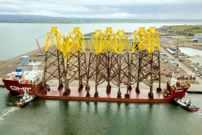The first eight jacket foundations for the Moray East offshore wind project arrived in the Port of Nigg in Scotland at the weekend, delivered by OHT’s heavy transportation vessel Osprey from the UAE.