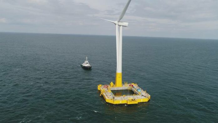 The V80 Vestas turbine is installed atop a floating foundation provided by Bouygues Travaux Publics.