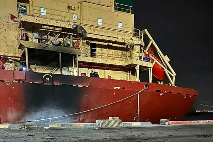 The strike is alleged to have been carried out using Russia’s Iskander-M ballistic missile, equipped with a cluster warhead. The Ukrainian Sea Ports Authority (AMPU) confirmed that MJ Pinar sustained severe damage, while port infrastructure was also significantly affected. The quay wall, a grain gallery within the terminal, and at least four grain silos were all damaged. Search and rescue teams, along with firefighting units, arrived on-site immediately, successfully containing the resulting fire.