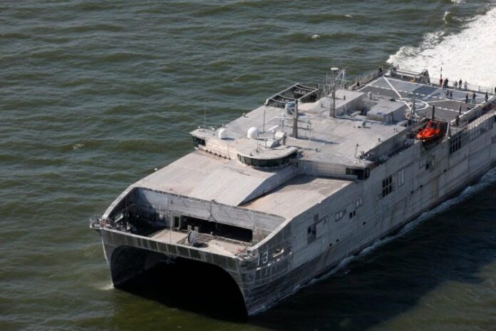 Constructed at Austal USA’s Mobile Alabama shipyard, EPF-13 is the first Spearhead-class Expeditionary Fast Transport (EPF) ship with capabilities for V-22 Osprey flight operations and enhanced medical support. It is also the United States Navy’s largest ship with the capability to operate as an unmanned surface vessel (USV).