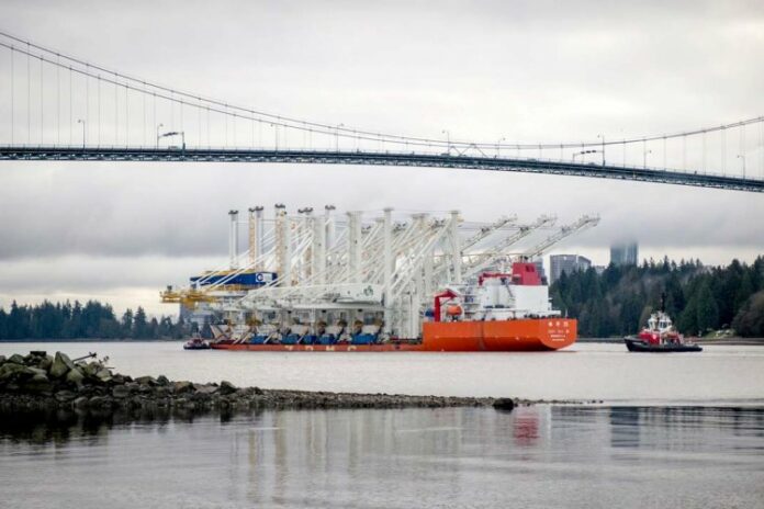 On November 27, 2020, GCT Global Container Terminals Inc. accepted the delivery of two modern 14,000 TEU capable ship-to-shore cranes at GCT Vanterm in Burrard Inlet in the Vancouver Harbour. After travelling roughly 9,200 km or 5,000 nautical miles from Shanghai, the two cranes passed safely under the Lions Gate Bridge and arrived at GCT Vanterm.