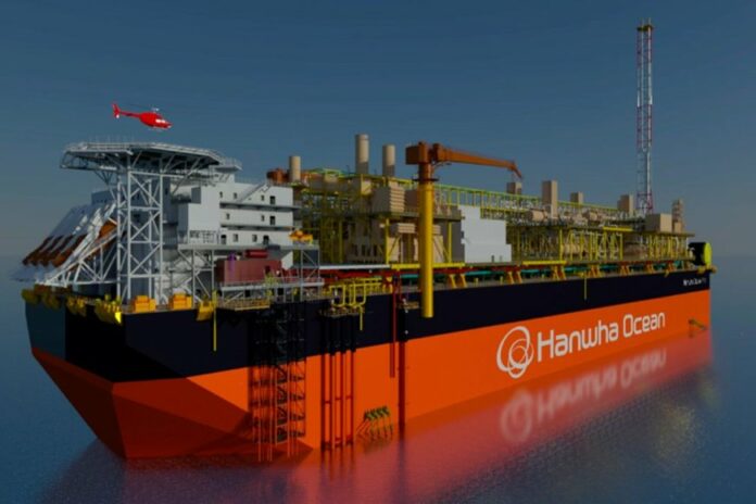 Standard FPSO design of Hanwha Ocean measures 340 meters in length and 62 meters in width, with a crude oil storage capacity of 2.38 million barrels and a production capacity of 190,000 barrels per day.