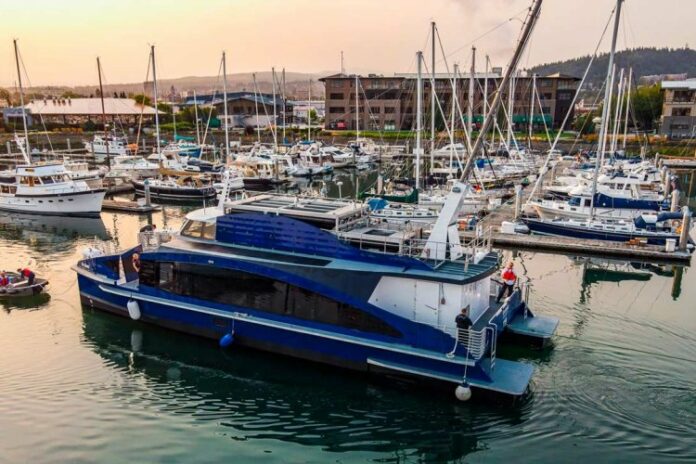 Delivered by All American Marine, the project has been spearheaded by the vessel owner SWITCH Maritime and was brought to fruition by a consortium of contributors, including Incat Crowther, Zero Emissions Industries, BAE Systems and Hornblower Group, who Incat Crowther worked closely with on the recent NYC Ferry newbuild program.