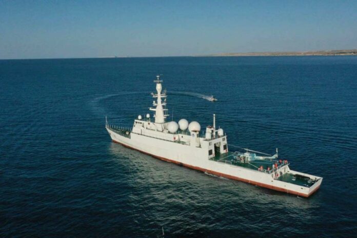 The Iranian Navy classifies the ships of the Mowj project as destroyers. Their displacement is 1700 tons, length is 94.5 m, and width is 11.1 m. Most likely, the reconnaissance ship is built in the same dimensions.