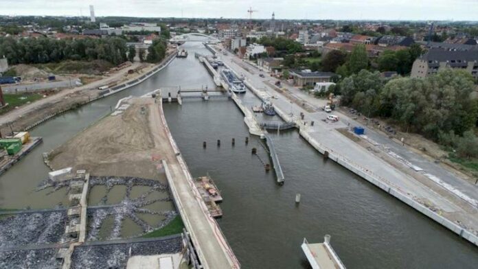 These maritime infrastructure works in Harelbeke are part of the overall Seine-Scheldt project, which improves the waterway link between the Seine basin and the Scheldt basin. Thanks to some large-scale infrastructure works in France, Wallonia and Flanders, inland navigation vessels up to 4,500 tonnes will be able to sail between Paris and Antwerp. These infrastructure works include a/o the renovation of locks, weirs and quay walls, the deepening of canals or the excavation of new ones and the raising of bridges.