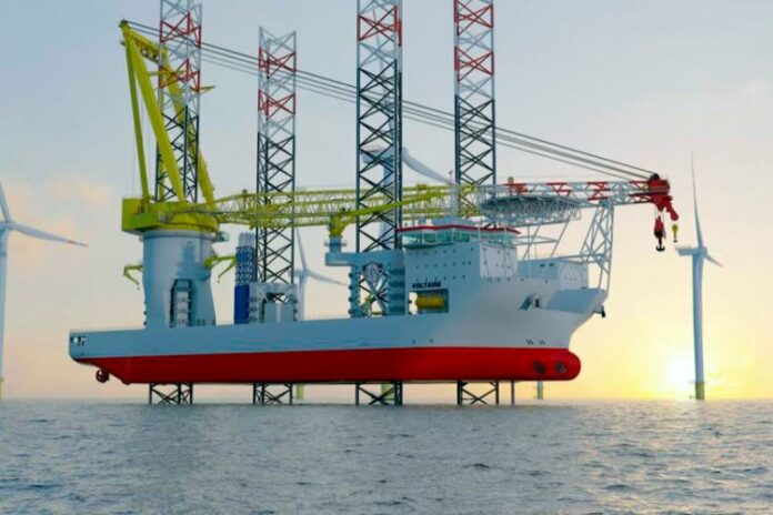 This Offshore Jack-Up Installation Vessel Voltaire is currently under construction. She will have a lifting capacity of over 3,000 tonnes and will enter into service in 2022.