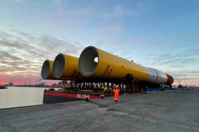 A first batch of 3 monopile foundations has left Steelwind’s yard in Nordenham (Germany) to Eemshaven (The Netherlands), which is part of Groningen Seaports.