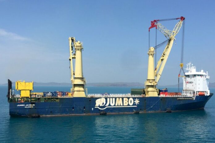 The Jumbo Javelin is a DP2 heavy lift crane vessel operated by heavy lift shipping and offshore installation contractor Jumbo. The 144m-long vessel is typically mobilised for offshore installation contracts, providing dynamically positioned (DP) heavy lift services with its two 900-tonne mast cranes.