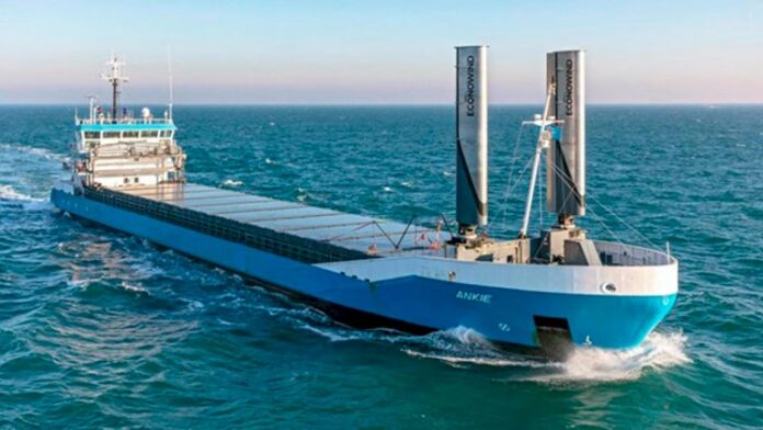 The 3,600 DWT general cargo vessel MV Ankie, made its first voyage with the two wings installed, sailing for Wagenborg from Delfzijl to Hamburg, onwards to Norway and then back to Rotterdam.