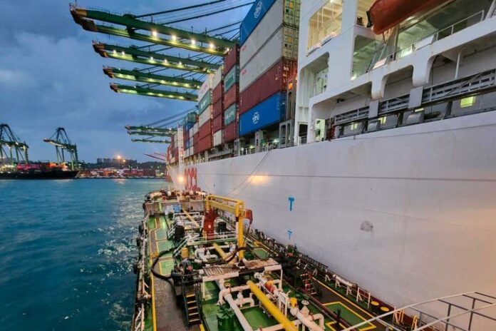 The fuel delivery, arranged by KPI OceanConnect’s team in Singapore and supplied by barge, was received by OOCL’s container vessel while at port in Singapore. Fuel delivered was a blend of Used Cooking Oil Methyl Ester (UCOME) and Very Low Sulphur Fuel Oil (VLSFO).